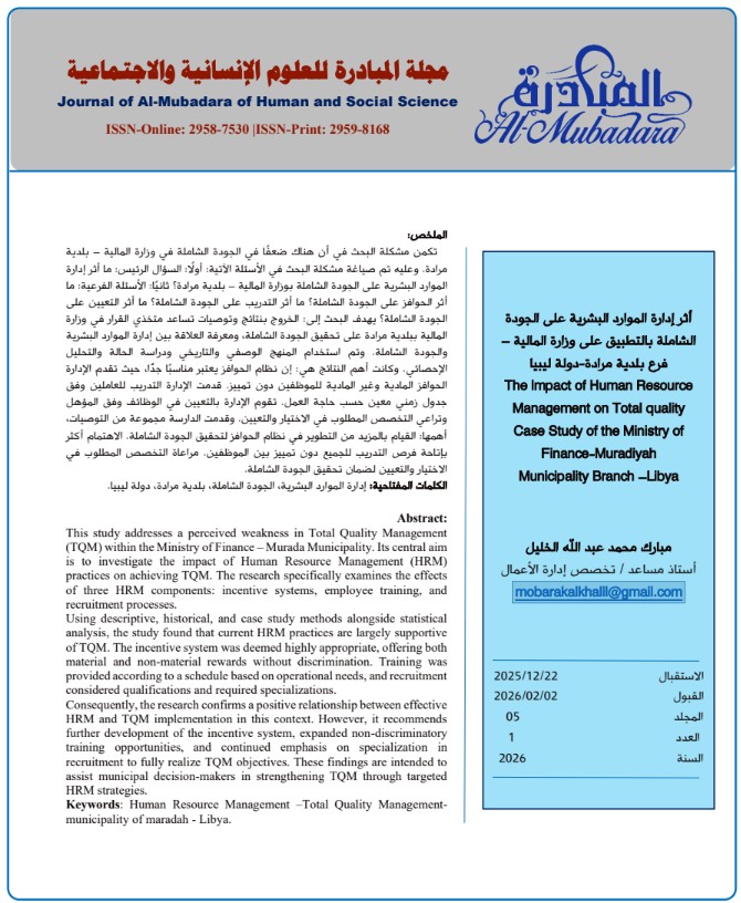 The lmpact of Human Resource Management on Total qualityCase Study of the Ministry of Finance-MuradiyahMunicipality Branch –Libya