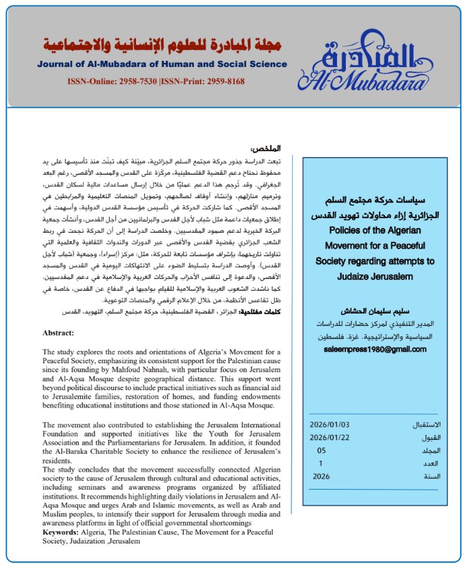 Policies of the Algerian Movement for a Peaceful Society regarding attempts to Judaize Jerusalem