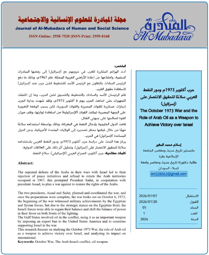 The October 1973 War and the Role of Arab Oil as a Weapon to Achieve Victory over Israel