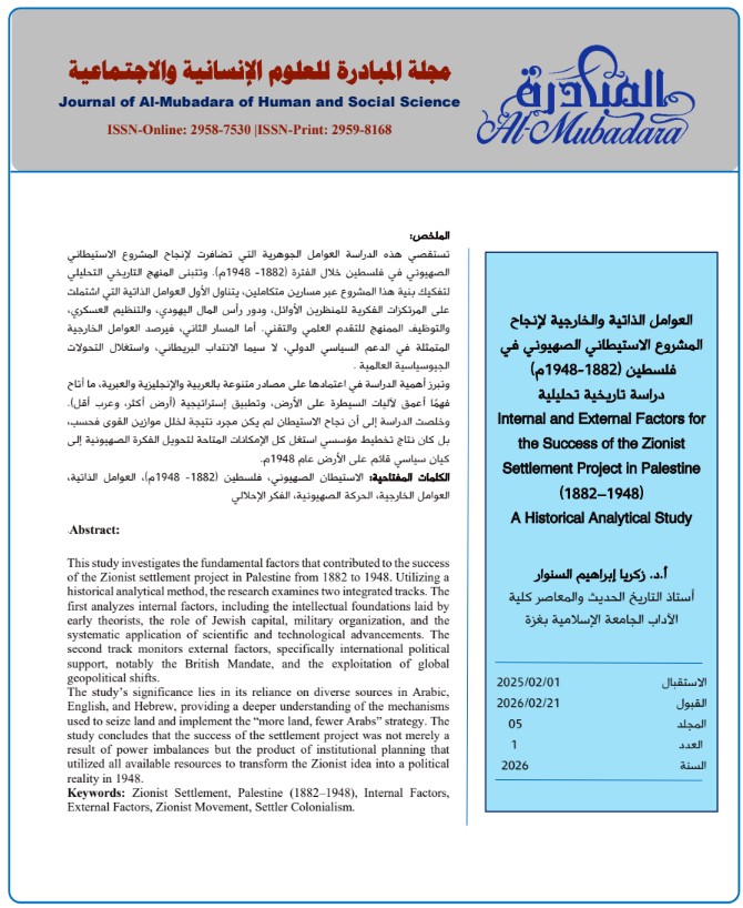 Internal and External Factors for the Success of the Zionist Settlement Project in Palestine (1882–1948) A Historical Analytical Study